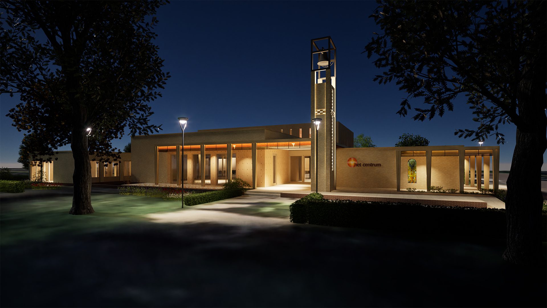 Risico van het vak….Samen met 4 andere bureaus zijn we gevraagd mee te doen aan een architectenselectie om van Het Centrum in Nijverdal een echte kerk te maken. Met 1 andere partij waren we door naar de 2de ronde. Helaas voor ons is de voorkeur niet voor ons ontwerp uitgesproken. Door het toevoegen van kleur, luifels en een klokkentoren oogt het wat zakelijke gebouw als kerk. Het blijft bij de plaatjes.